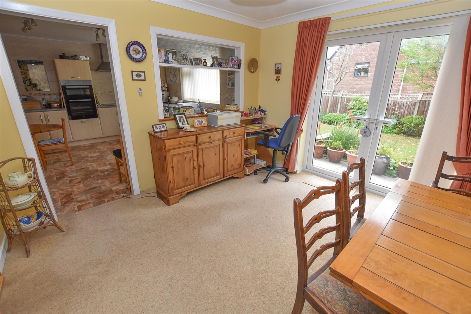 The well proportioned dining room enjoys the aspect over the garden, whilst on the right, connecting door leads into the spacious breakfast kitchen which offers a wide range of wall and base units with eye level oven and grill, inset sink and space for appliances. Aspect over the rear garden and connecting door into the utility room.