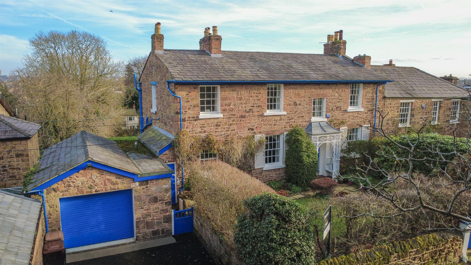 This is a hugely attractive Grade ll Listed, sandstone built, five double bedroomed semi detached with garaging and, as you can see, a beautiful and quite substantial rear garden plot. The property comes with a through living room; dining room and sitting room together with an open plan kitchen with morning room (all identified as 'reception room' within our floor plan below). In addition, there are a number of rooms and auxiliary rooms integrate within the house yet separate from the main house accommodation, as shown to the rear of the garage, which could offer potential for conversion into semi independent accommodation. Given the nature of the plot and its position within Oxton Village, there are some eye catching views across to the Liverpool skyline.
