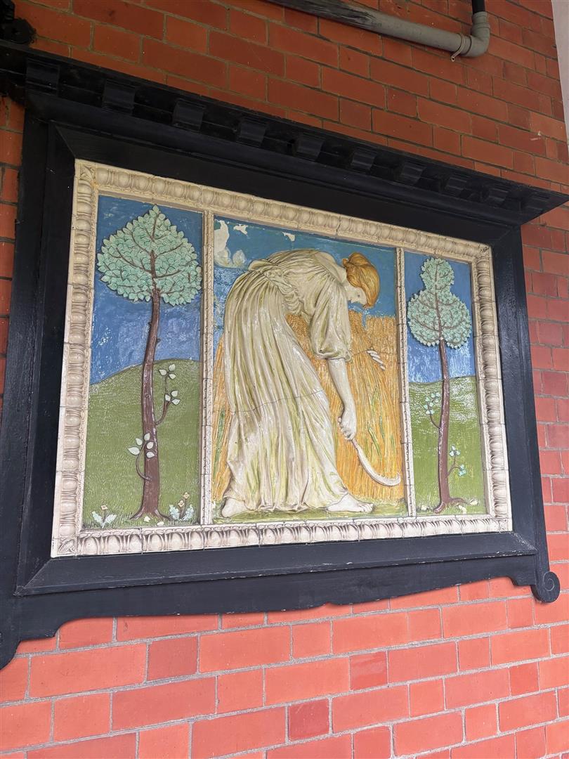 The path leads (secret garden like) through to a 'corner' of a sizeable communal garden where a separate, again unallocated, nonetheless seen as 'belonging to', considerably private garden area stands in front of the apartment's somewhat glamourous entrance. This comprises a veranda bay, tiled (original) with wide double opening doors; above which is some extraordinary detailed woodwork and beside the windows an image of a lady scything her corn - an image you must promise to leave and never take away (why would you?) - see photos.
