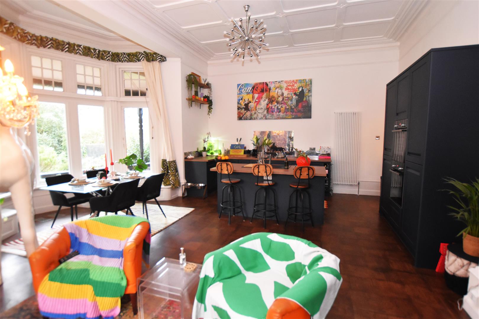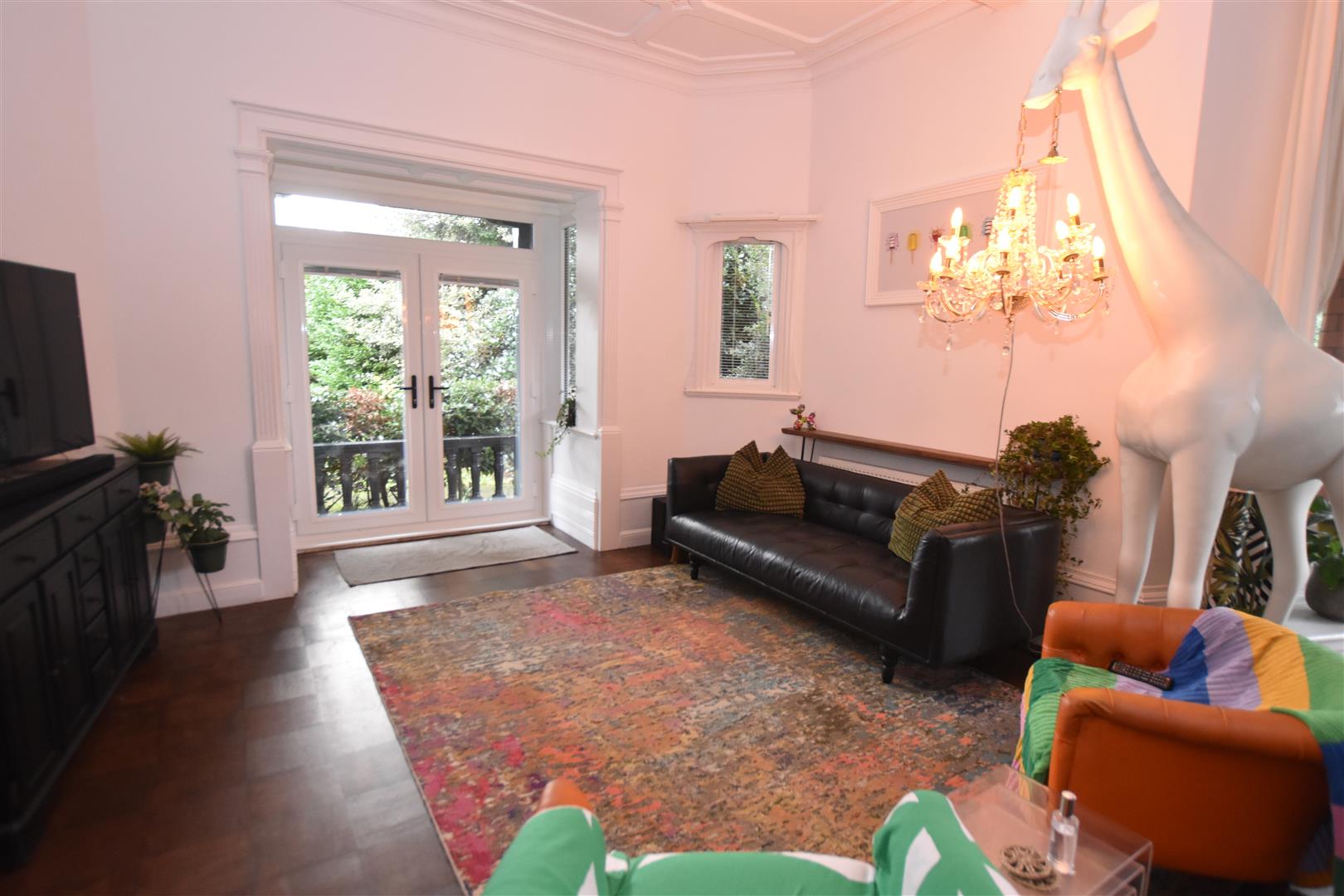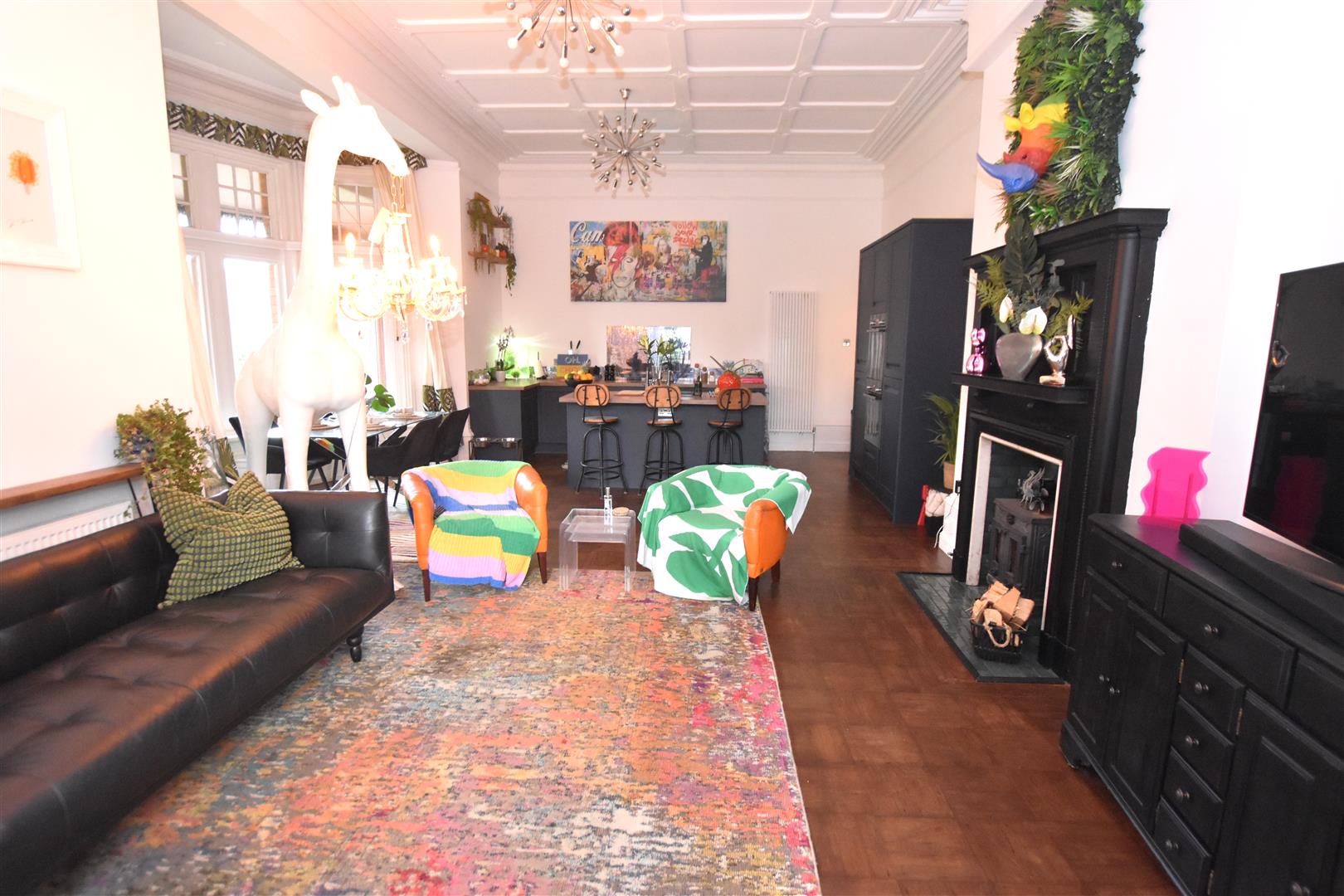 We thought the Giraffe might catch your eye? And now we may have your attention, we'd like to take you through what is clearly a property dressed in, let's say a very individual and flamboyant manner; in a style, giraffe or no giraffe, that to us at least, 'works' in a rather fabulous way. Within what is anyway a very distinguished and hugely traditional, period Victorian 'Gentlemen's residence.' its current presentation lends a well intended injection of fun, colour and, well glamour...But take all our clients artistic approach to this mansion apartment away, and what we present for sale is a hugely impressive two double bedroomed ground floor apartment with its own private entrance.And it comes with all sorts of features, aspects and benefits too that we'll endeavour to portray here. Nevertheless, with even just a sparkle of interest generated by your enquiry here, your likely then you want to walk through and explore this explosion of old versus modern, at your own pace... we just ask that you are in a position to buy or close to, when you do..